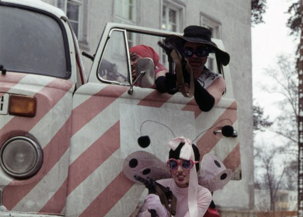 てんとう虫のコスチュームをまとったビュル・オジエ、顔面を道化師ふうに塗りたくったハンナ・シグラ。クライマックスを彩る二大女優の強烈なビジュアルに目がくらむ。