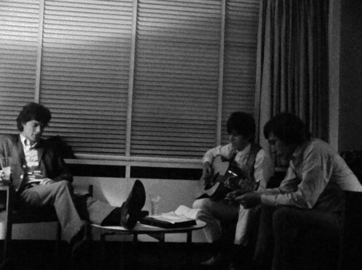 ミック・ジャガーとキース・リチャード(ストーンズでデビュー時にリチャーズのSを取ってリチャードと名乗り、70年代後半に現在の本名に戻した経緯がある)のホテルでのセッションなど、珍しい映像もプラスされ、若々しく野心満々な彼らの姿がたっぷり見られる。