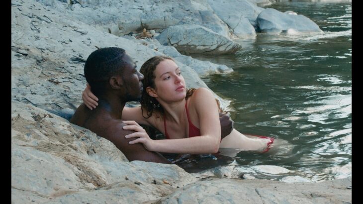 笑いながらはしゃぐフェリックスとアルマ。遠景だが二人の幸福感は伝わってくる。深い緑に囲まれた渓流の中で戯れる姿に、「やるね」、「夢のようだ」と羨むシェリフとエドゥアール。